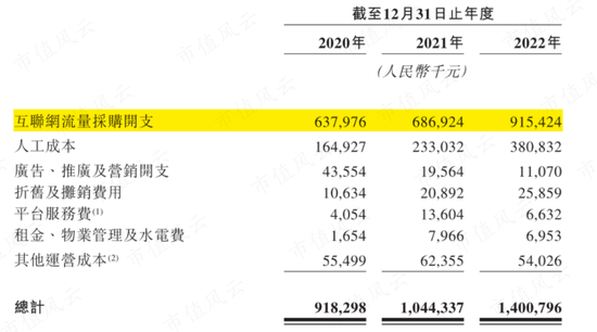 销售费用主要来自上文提到的互联网流量采购开支,后者占到65%以上。