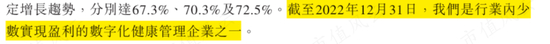 公司在招股书中强调,截至2022年末,公司是行业内少数实现盈利的数字化健康管理企业之一。