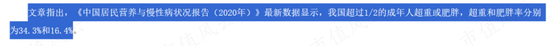 根据《柳叶刀》子刊引用的《中国居民营养与慢性病状况报告(2020年)》数据,我国超过1/2的成年人超重或肥胖,超重和肥胖率分别为34.3%和16.4%。