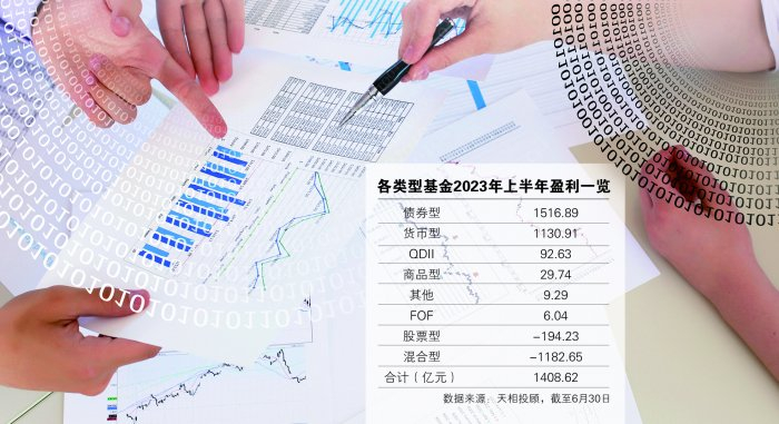 从整体盈利情况来看,天相投顾数据显示,2023年上半年公募基金整体盈利1408.62亿元。