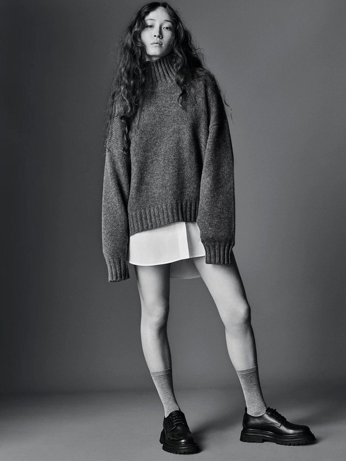 本季通过肩部廓形营造先锋大胆的视觉效果,功能性长款RWS羊毛外套则宽松有型,赋予穿着者力量感。层叠设计被用以提升服装的廓形及比例;喇叭裤和宽松版式的男式长裤,为经典西装注入休闲型格。低腰裤搭配翻边腰带,与短款毛边夹克叠穿相得益彰,不对称的垂坠效果则使传统细条纹面料别具现代风格。