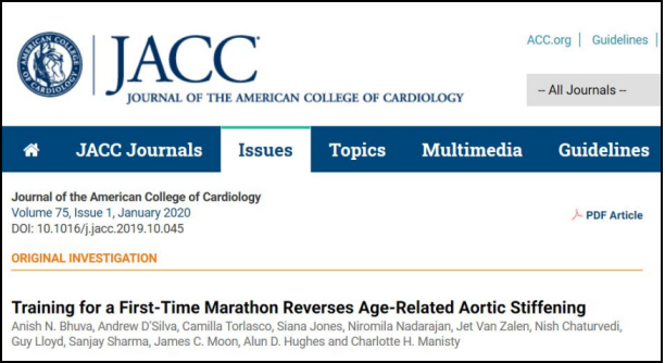 [2] Bhuva A N , D'Silva A , Torlasco C , et al. Training for a First-Time Marathon Reverses Age-Related Aortic Stiffening[J]. Journal of the American College of Cardiology, 2020, 75(1):60-71.