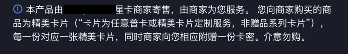 为了避免翻车,很多平台的卡社重新设定了商品介绍语,称购买随机球星卡赠抽奖机会。
