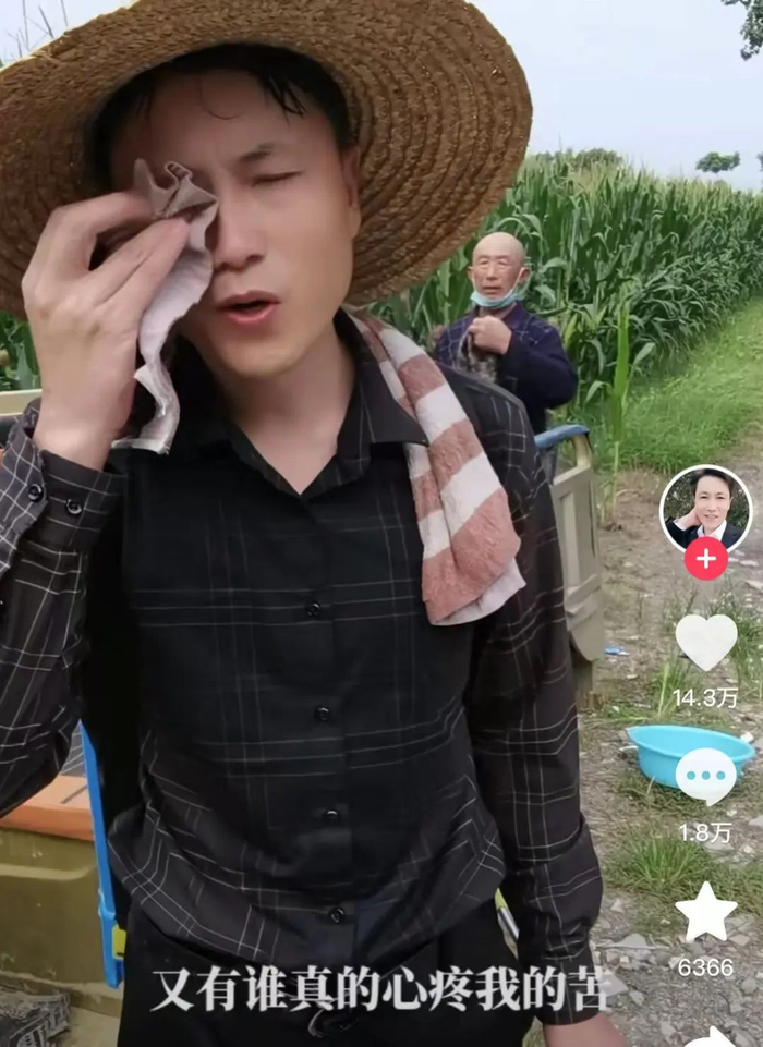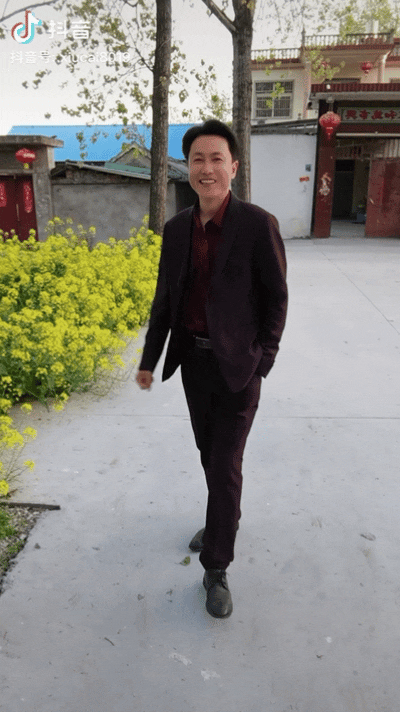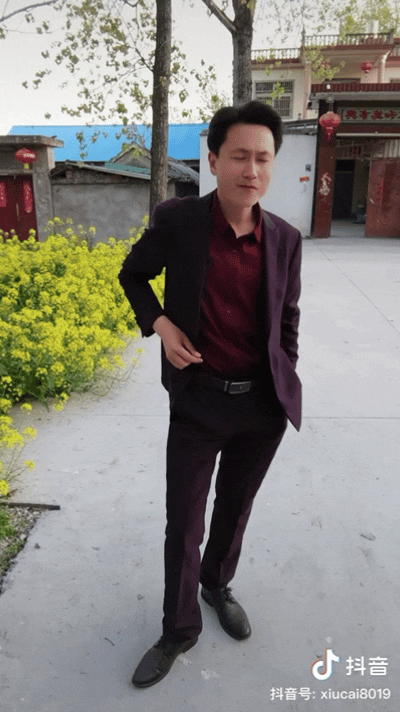 他留着小分头,在田间地里扭动、比心、微笑,主要作品是对着土歌对口型。