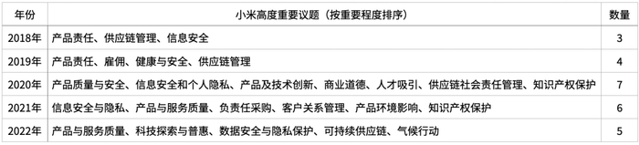 小米高度重要实质性议题设置情况(整理:李讯)