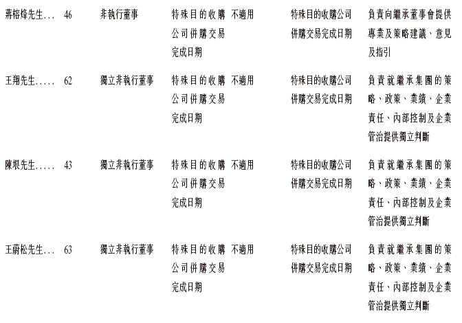 参与是次特殊目的收购公司并购交易的中介团队主要有:招银国际、汇丰、瑞银为其联席保荐人兼整体协调人;美驰亚洲、瑞银目标公司财务顾问;德勤为其审计师;世辉、凯易分别为目标公司中国律师、目标公司香港及美国律师;君合、安理为其券商中国律师、券商香港及美国律师;富而德为SPAC公司的香港及美国律师;普衡为发起人律师;灼识咨询为其行业顾问。