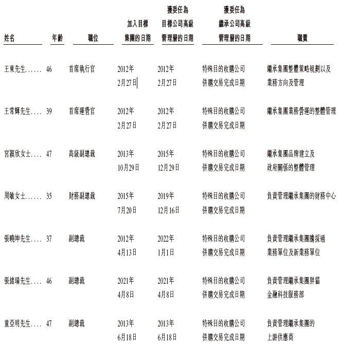 继承集团董事会由9名董事组成,包括4名执行董事、2名非执行董事、3名独立非执行董事。