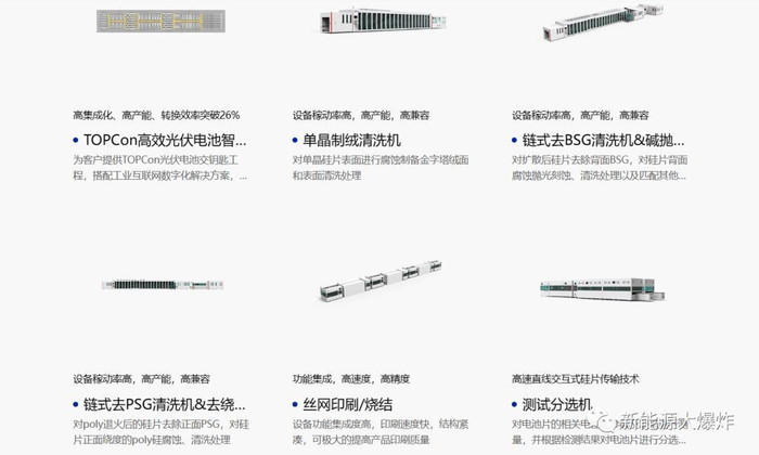 光伏设备业务,公司主要做的是光伏电池和光伏组件环节的设备,可以提供光伏电池和光伏组件的整线方案。尤其是TOPCon SE 激光掺杂设备,今年开年就获得了超 10GW 的订单。