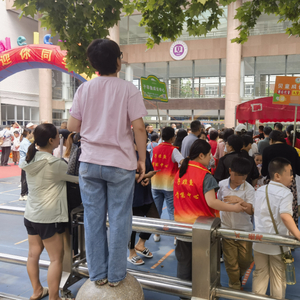 一年级学生放学时间为11点15分。此刻,学校门口两侧已经有不少家长在此等候,远处不断有家长来到学校门口处等待并向学校内望去。