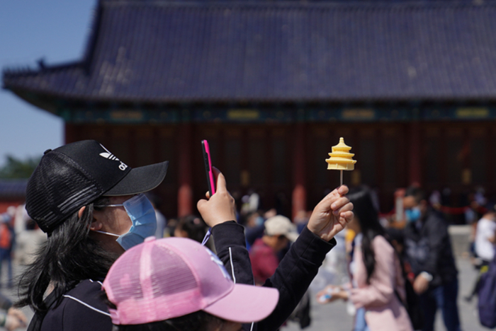 有的景区主打逼真的地标建筑,如黄鹤楼文创雪糕就堪称“雪糕雕塑”,原型建筑物上的瓦片和飞檐都被复刻得惟妙惟肖;有的拿景区特色动植物做文章,如圆明园荷花雪糕;还有的靠镇馆之宝、文博IP“出圈儿”,像国家博物馆的击鼓说唱俑、四羊方尊……化身雪糕的文物们端庄又不失俏皮,可爱又不失稳重。手中举着文创雪糕,和景区、博物馆里的雪糕原型来个合影,再发到社交网络上,如今这一套操作成了很多游客“打卡”的新选项。