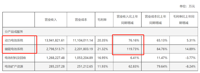 根据工信部数据,2023年上半年,我国磷酸铁锂动力电池产量达187.3GWh,同比增长52%;磷酸铁锂储能电池出货量超75GWh,同比增长1.3倍。从体量上看,增量大的是动力电池;但从增速上看,储能用电池增速更快。宁德时代2023半年报显示,报告期内公司储能电池系统营业收入279.85亿元,同比增长119.73%,动力电池系统营业收入则同比增长76.16%;磷酸铁锂头部企业湖南裕能也曾在投资者调研纪要中表示,储能型磷酸铁锂产品出货量大幅提升,已经成为公司增长速度很快的产品类型。