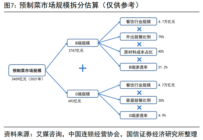 另外,让市场期待的是,目前我国预制菜市场,以企业端(即B端)消费为主,因为能解决餐饮企业成本较高的痛点,而普通消费者(即C端)接受度还不高,未来的潜力较大。