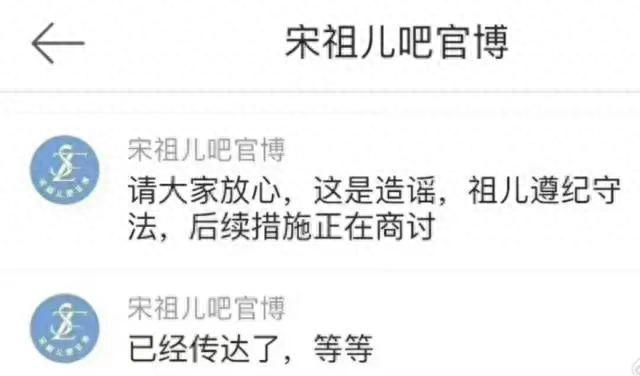 此外,宋祖儿官方粉丝团对此事做出了回应,称此事是谣言,已经在商讨后续措施。