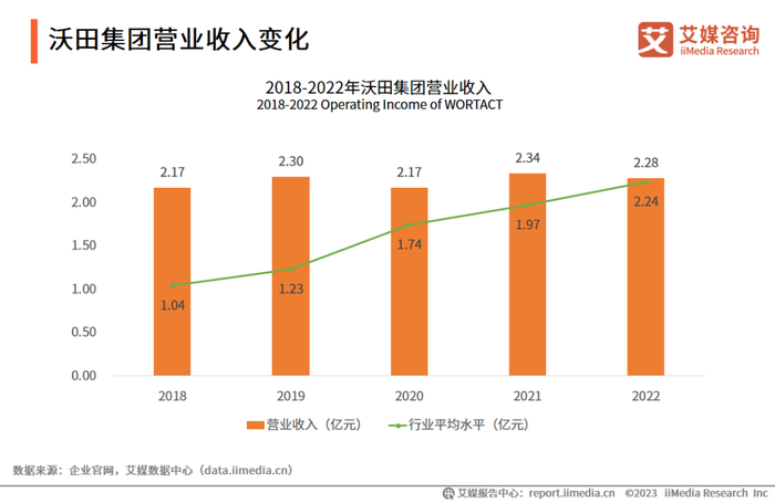 2018-2022年沃田集团营业收入比较稳定,虽每年均超过行业平均水平,但是与行业平均水平的差距逐步缩小。艾媒咨询分析师认为,蓝莓种植行业在国内为新兴的、快速发展的行业。随着蓝莓产业的兴起,大量潜在竞争对手进入该产业,加剧本行业的市场竞争,导致沃田集团营收水平与行业平均水平差距的降低。