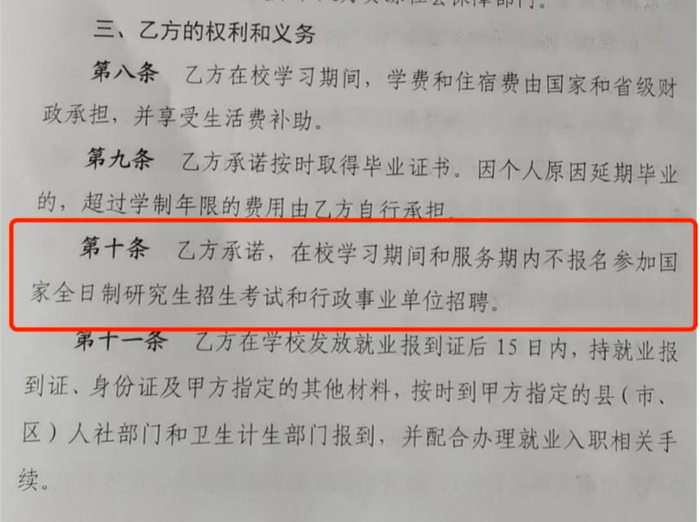 甘肃省卫健委一位相关负责人则表示,定向免费医学生在招考时就有约定,确实是要回到基层工作才能报这个专业、享受特殊分数条件,不能把这当成跳板。想考研的同学,应该直接报考临床医学专业,将来不论是要考研还是去大城市、去三甲医院都不受影响,把资源留给更需要的人。