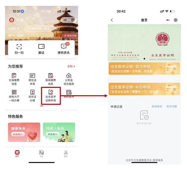 如何足不出户就能完成出生医学证明申领?新生儿父母可在“京通”小程序首页搜索或点击推荐栏目“出生医学证明申领”进入该服务,核对新生儿信息、上传有效证件。官方审核确认后,出生医学证明即可被邮寄到家。