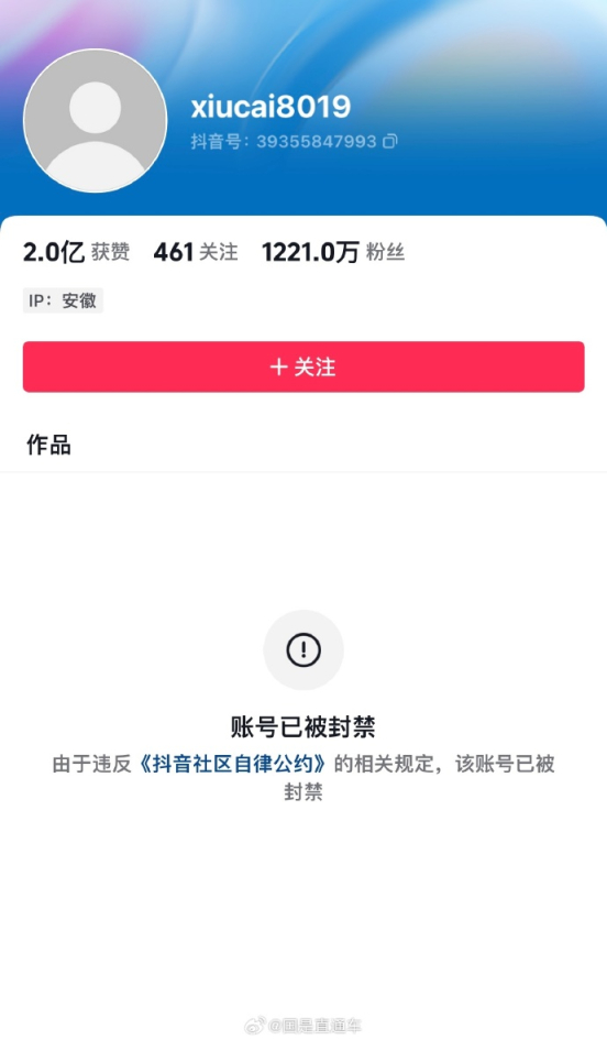 (原标题:千万粉丝主播“秀才”账号被封,抖音:违反平台规定)
