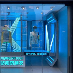 防晒服为今年春夏波司登主推业务,橱窗展示面积非常大/图源:盐财经记者 摄