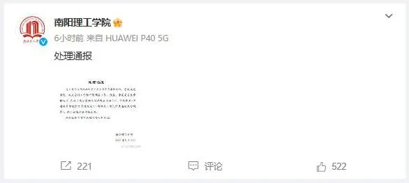 9月2日,@南阳理工学院 发布情况通报称,近日有网友反映我校学生李某某发布虐猫视频,学校高度重视,成立专门工作组开展调查工作。