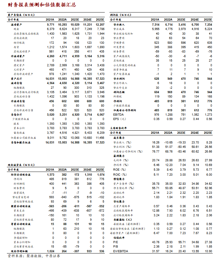事件:公司公布2023年半年度报告,2023年上半年公司实现营业收入19.14亿元,同比下滑40.25%。实现归属母公司股东的净利润1.05亿元,同比下滑84.99%,扣非后的归母净利润0.88亿元,同比下滑87.04%,基本每股收益0.08元。