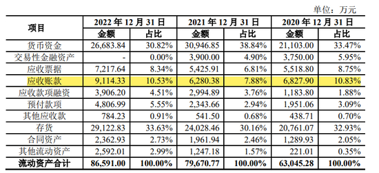 然而,在业绩高速增长的同时,汉兴能源的应收账款也在逐年攀升,2022年已接近1亿元。