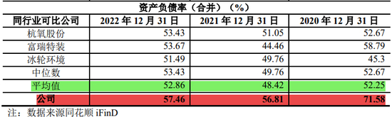值得注意的是,2020年-2022年,汉兴能源的资产负债率分别为71.58%、56.81%、57.46%,而同期其同行可比公司均值分别为52.25%、48.52%、52.86%,明显低于汉兴能源。
