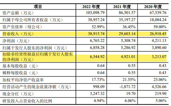 2020年-2022年,汉兴能源的营业收入分别为2.69亿元、2.96亿元和3.89亿元;扣非归母净利分别为3,213.07万元、4,921.01万元和6,544.92万元。