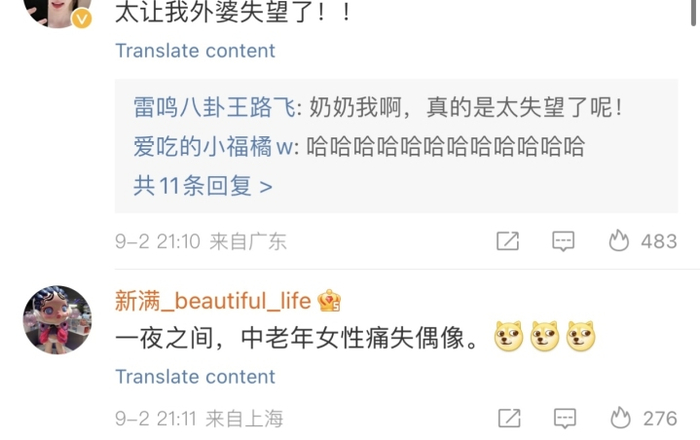 有网友表示,多少中年老年女性一夜“痛失偶像”。