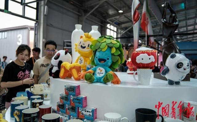 9月2日,北京首钢园,2023年中国国际服务贸易交易会文旅服务展区,一座展台上展示了历届国际奥运会的卡通吉祥物。中青报·中青网记者 张玉佳/摄