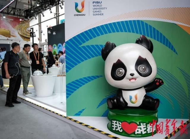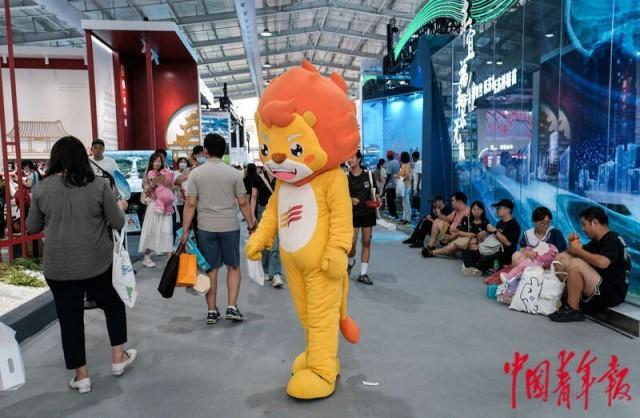 9月2日,北京首钢园,2023年中国国际服务贸易交易会文旅服务展区,2023成都大运会吉祥物“蓉宝”也来到了北京服贸会现场。中青报·中青网记者 张玉佳/摄