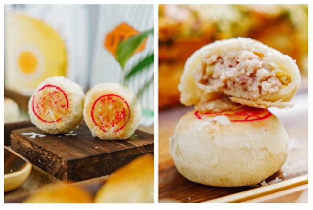 腌笃鲜肉月饼,创新结合本帮菜和苏式月饼,曾在中华糕点国际锦标赛赛事中荣获“地方特色糕点金奖”,纯手工的油酥面团能牢牢锁住内馅儿汤汁,口感集咸、甜、鲜于一体。榨菜鲜肉饼,精选猪后腿肉、上海咸肉和新鲜榨菜条,使用烫面工艺做出了层次分明的酥脆外皮,是爽脆和浓香口感的碰撞。