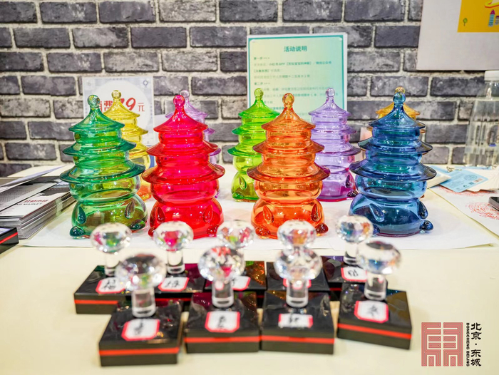 “故宫以东”特色文商旅融合品牌将格调雅致的生活方式带到了观众面前。人民美术文化园、北京早晨全家福照相馆及史家胡同文创社等机构携手复刻出老城时光场景打卡空间,营造了浓浓的乡愁氛围。尚潮创意展示“宫猫”“雍正御批折扇”等畅销IP形象,将故宫淘宝最新文创产品带给了现场观众。“小北的朋友”聚焦青年文化群体,用美食传递感情,围绕东城文化地标,推出“东城印巷”系列文创衍生品。由星辰万仟公司为东城区量身定制的三维立体“東”字造型LOGO,由近25万块榫卯积木历时2个月拼搭完成,展现了传统文化与现代创意的有机融合。