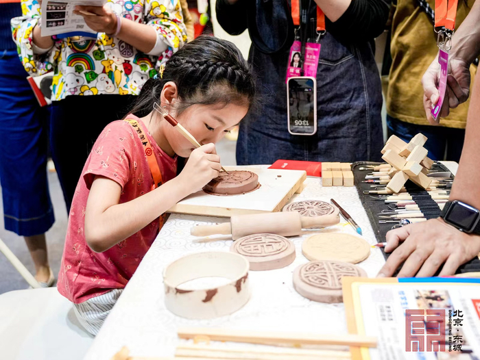 为了方便更多消费者走近东城,现场还设置了“东城印象”直播间,包括北京珐琅厂、龙顺成、红桥市场、尚潮文化、墨池文化、书香世业等机构,通过直播间宣传推广非遗技艺、文化创意产品、“中轴线”主题文化作品以及东城区对口支援地区文化特色产品等。