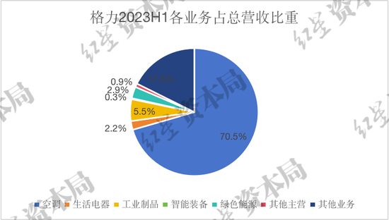 财报显示,今年上半年,格力的空调业务收入占总营收比为70.5%;美的各业务占比最大的也是空调,占总营收比为46.7%;海尔则是电冰箱业务,占总营收比为30.6%。