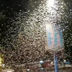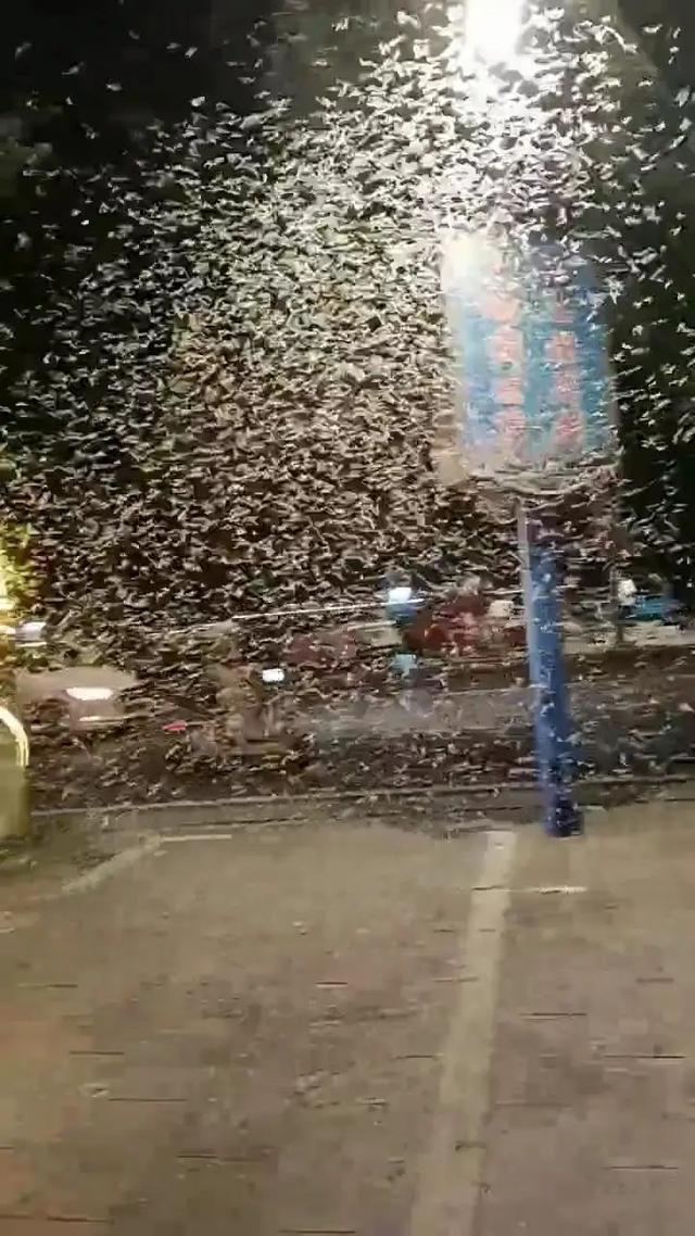 9月2日晚,湖南益阳沅江市部分地区出现大量飞虫。网传视频显示,大量的飞虫聚集在路灯附近,街道上也有不少飞虫尸体。