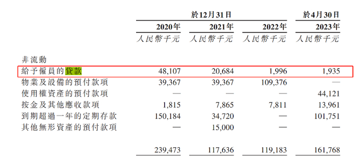 招股书显示,中旭未来向银行借款的同时,还在向雇员提供贷款,“用于各雇员的个人需求”。上述同期内,企业给予雇员的贷款分别为4810.7万元、2068.4万元、199.6万元、193.5万元。