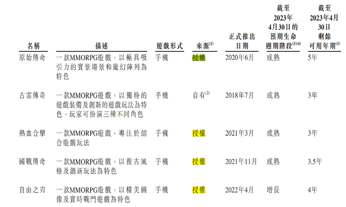 在其公布的收入贡献最大的五款游戏产品中,只有《古云传奇》显示为“自有”,其他均为授权而来。