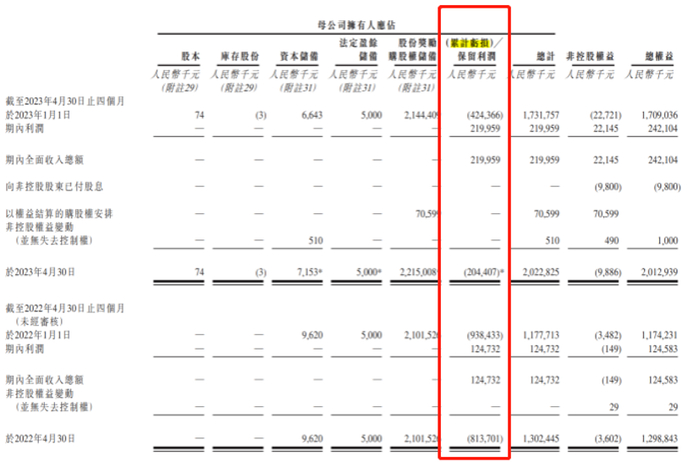 截至2023年4月30日,母公司拥有人应占累计亏损8.14亿元。若此时再加大联营项目,只能徒增表面的营收规模,利润却是拱手相让于合作方,白白为他人做了“嫁衣”。