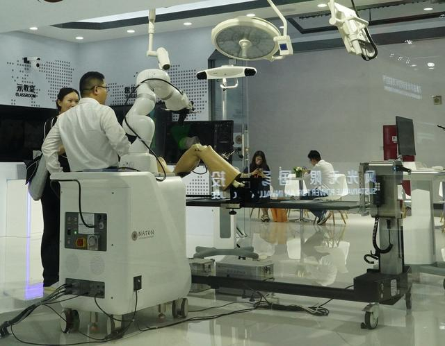 作为一家旗下拥有11家国家高新技术企业的国际化医疗健康产业集团,北京纳通科技集团已是连续四年参加服贸会。今年,它带来了智能手术室系统、关节机器人、外骨骼机器人、智能载药纳米机器人等一系列尖端医疗科技成果。