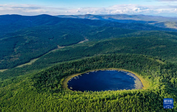 这是8月31日拍摄的阿尔山国家森林公园阿尔山天池景色(无人机照片)。初秋时节,内蒙古自治区兴安盟阿尔山市秋意渐浓,景色宜人。新华社记者 连振 摄