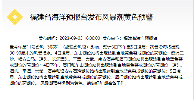 风暴潮黄色警报