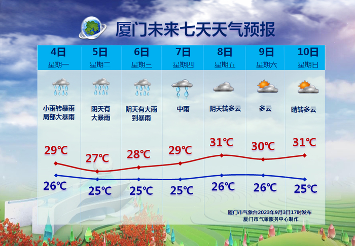 厦门市将出现暴雨,局部大暴雨。