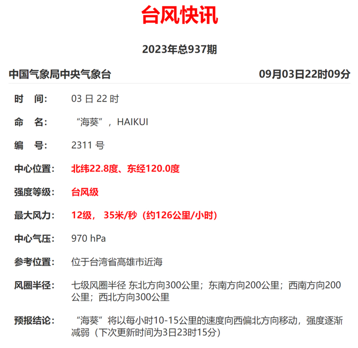 3. 台风“海葵”的强度、移速、路径仍存在不确定性。请关注其最新发展动态及对厦门市和沿海的影响。