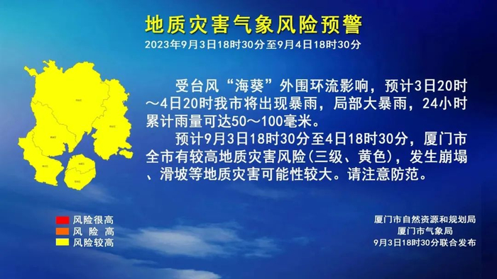 2.此次“海葵”强降水过程持续时间长,累计雨量大。关注强降水叠加效应可能引发的局地崩塌、滑坡等地质灾害及城乡积涝等次生灾害。