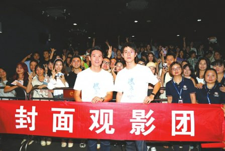 陈哲艺(前左一)及刘昊然(前左二)在路演现场。