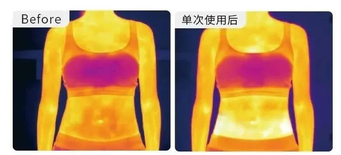 VONMIE沃脉研发实验室,专门做过热成像试验,从试验数据也能看到,使用塑腰带后腹部温度明显上升!