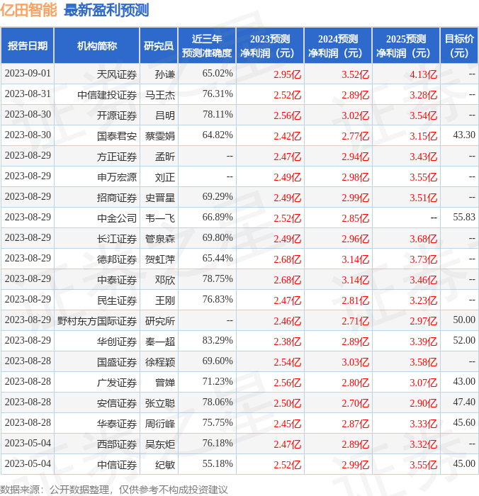 西南证券股份有限公司龚梦泓,夏勤近期对亿田智能进行研究并发布了《Q2重回增长趋势,单季度利润新高》,本报告对亿田智能给出评级,当前股价为41.13元。