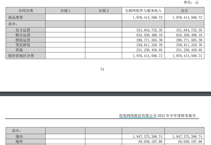 从恺英网络对外披露的信息可知,在公司互联网软件与服务业务板块中,2023年上半年,来自联合运营的细分业务类别收入最高,达到了8.36亿元,而来自自主运营细分业务类别的收入则为3.31亿元。恺英网络当期收入的绝大部分来自中国境内。