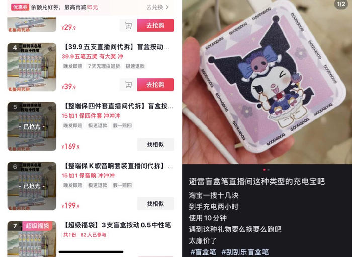 此外,我国未成年人保护法和《关于制止彩票入侵校园有关问题的意见》等相关法律法规也都明确规定,不得向18岁以下未成年人兜售具有赌博性质和以盈利为目的的产品。但在“开学经济”和“盲盒经济”的作用下,“文具盲盒”依旧以各种形态在违法的边缘疯狂试探。