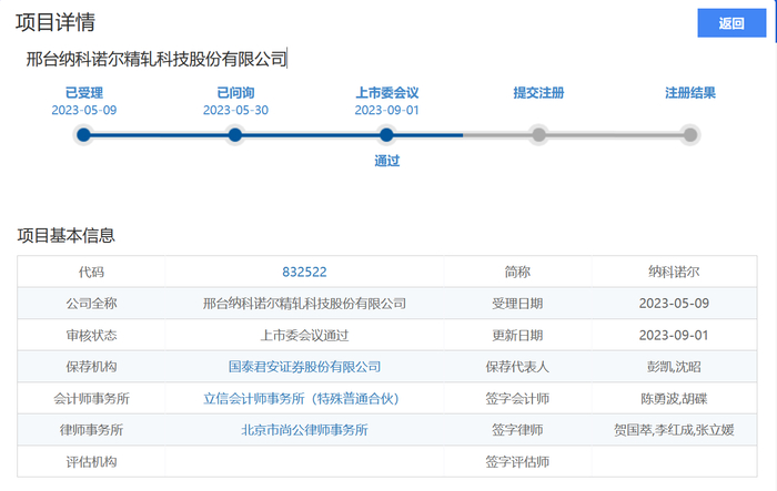 [公司]行业领先辊压机制造商、工信部重点专精特新“小巨人” 纳科诺尔北交所IPO成功过会